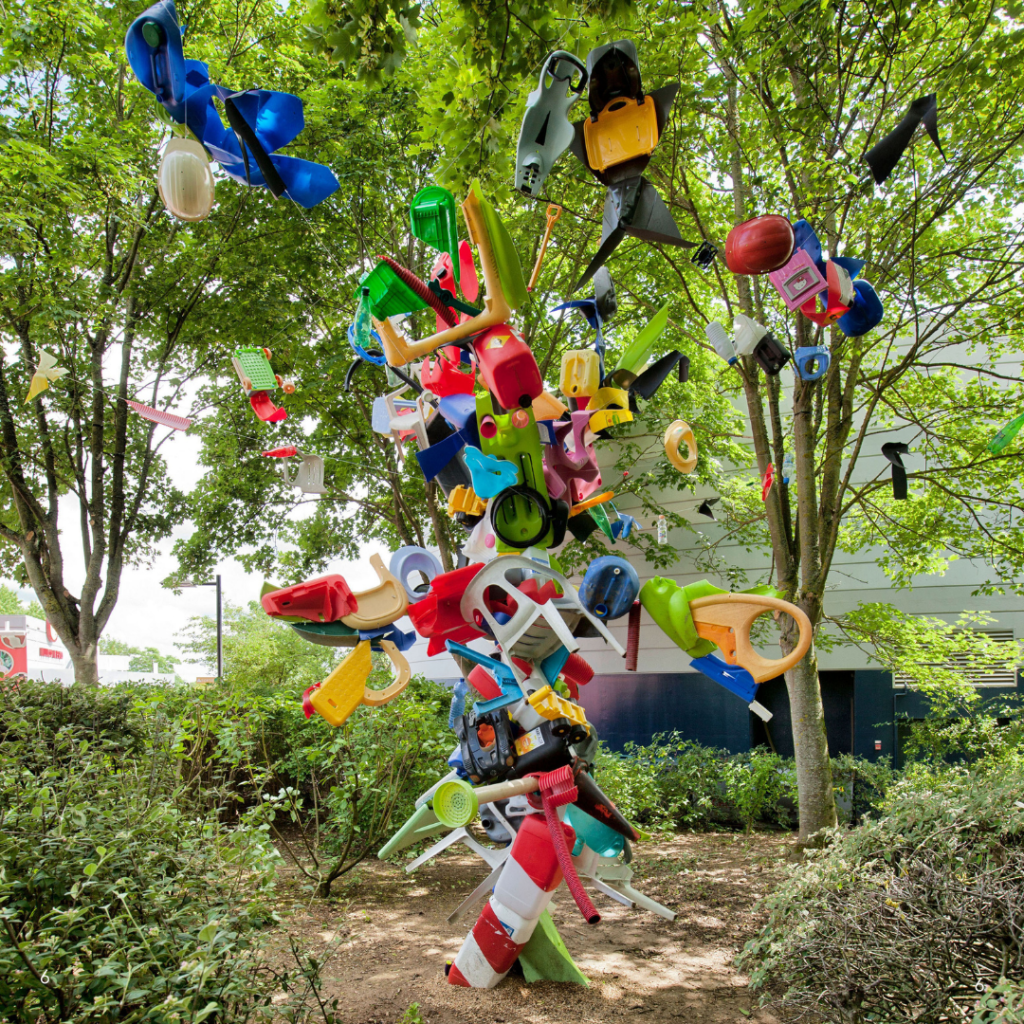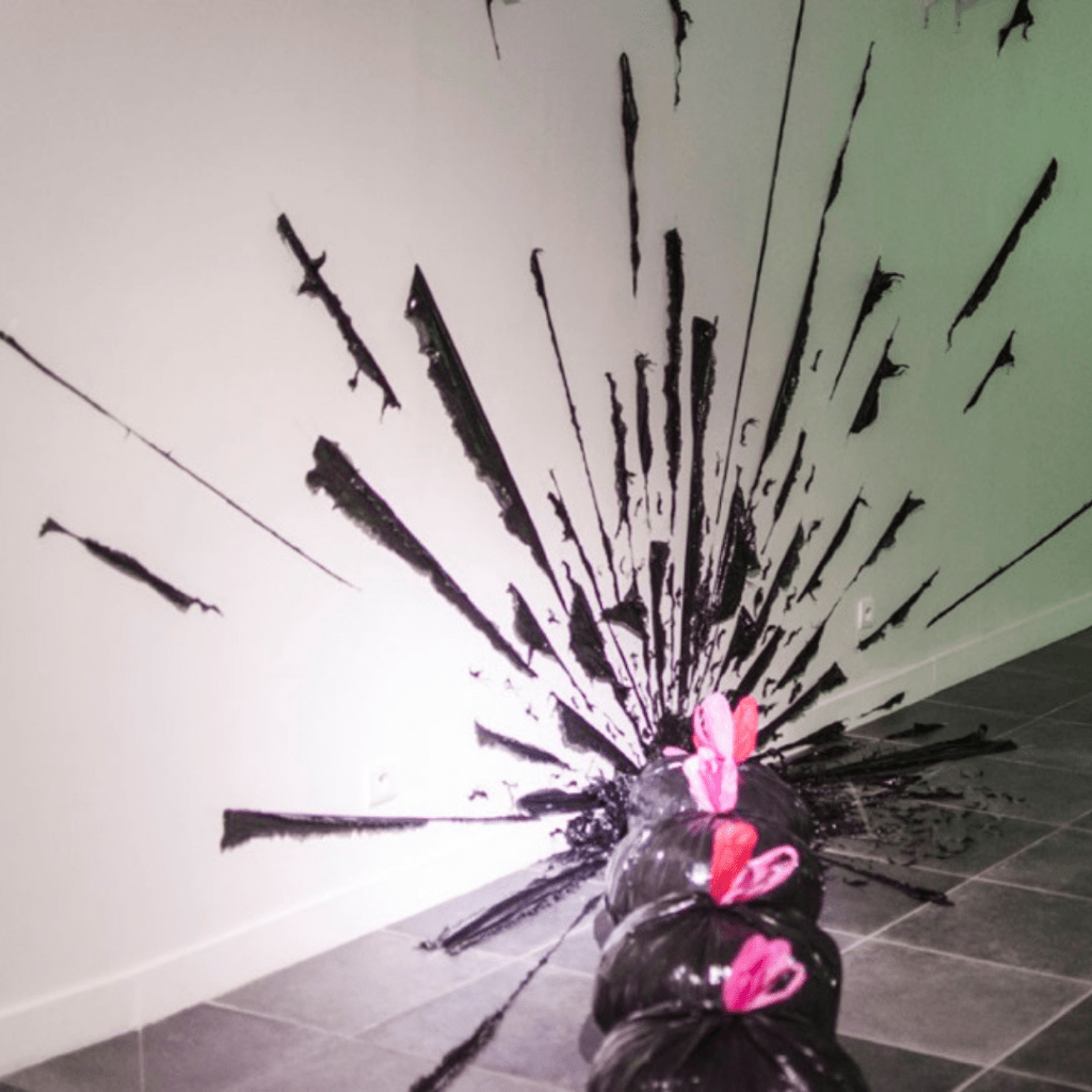 « Plastic Attack » évoque le danger que représente le plastique à l’échelle mondiale. A travers des explosions colorées composées de sacs ou d’objets abandonnés, Clay Apenouvon cherche à exprimer la « beauté fatale » du plastique en dépeignant un désastre prévu. L’abondance du plastique qui couvre des espaces entiers dans son œuvre met en avant la surconsommation et le péril écologique que celle-ci entraîne. Simultanément belles et toxiques, les explosions de Clay Apenouvon incarnent les contradictions et l’inaction de nos sociétés