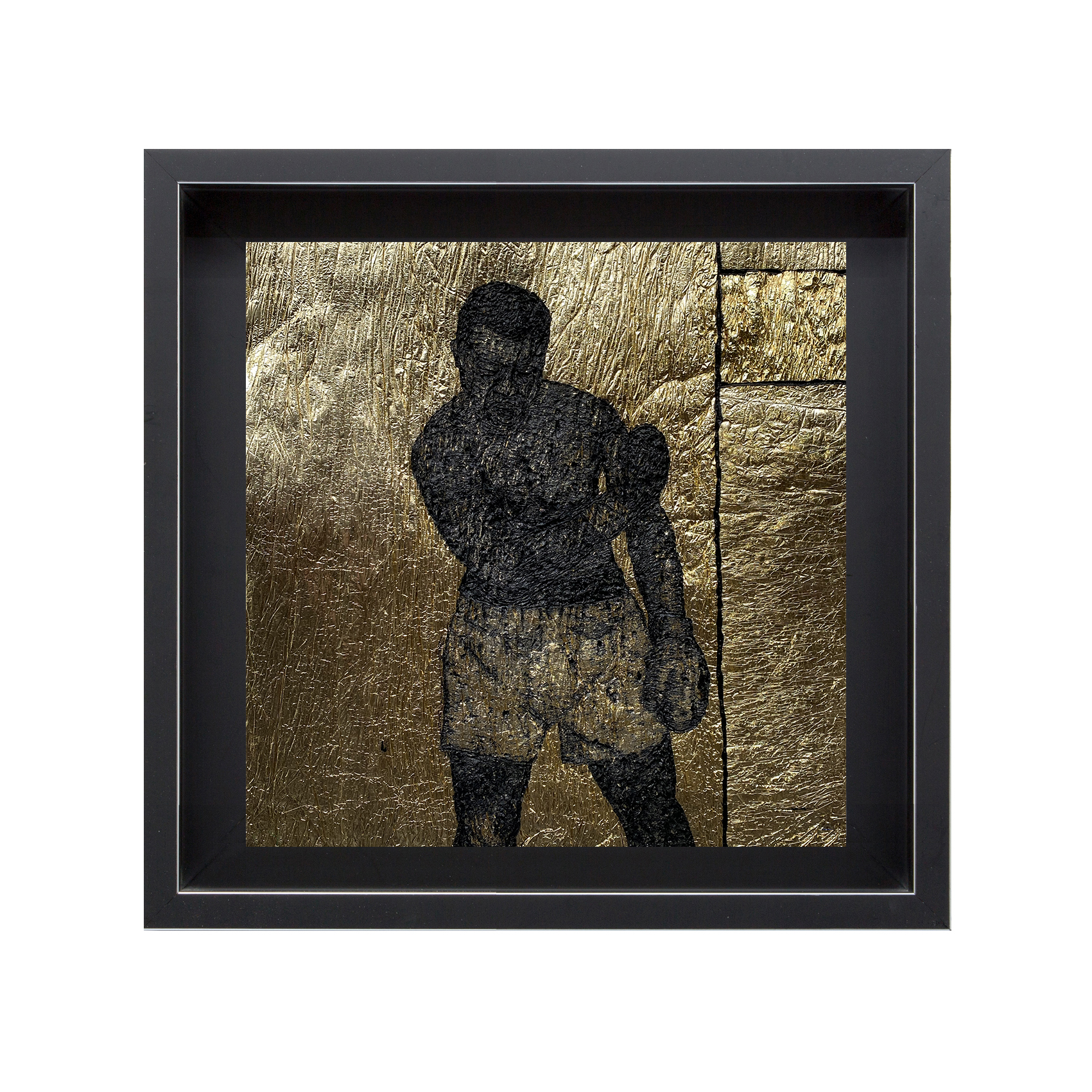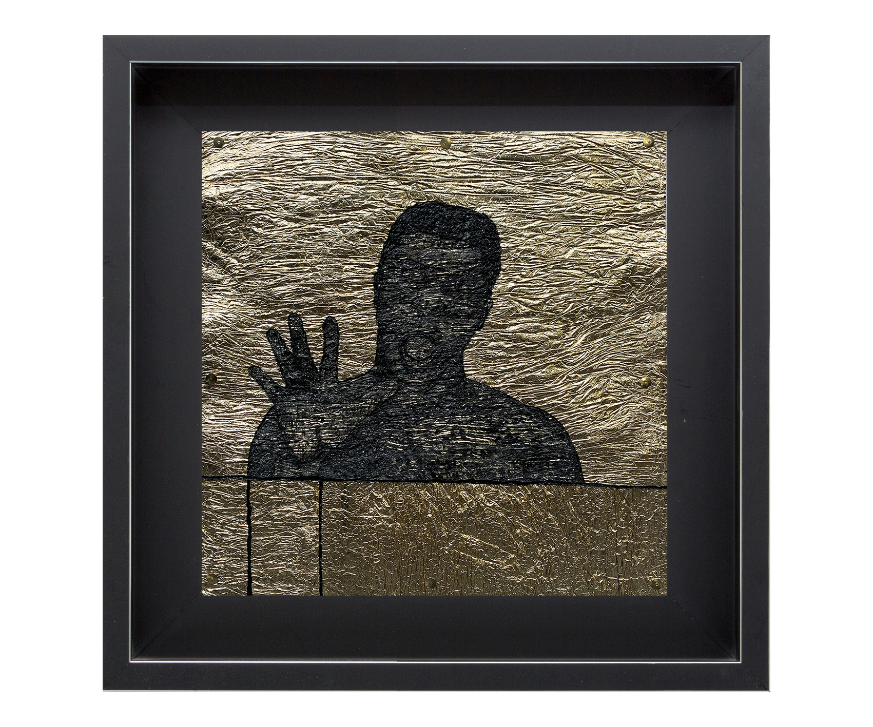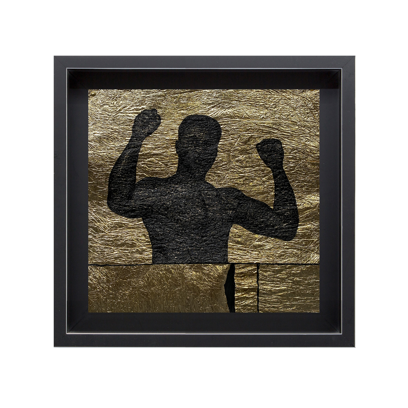 En associant le film plastique noir à la couverture de survie, l’artiste explore les propriétés du plastique. Il travaille la matière brute par compression puis combustion pour créer un support à la texture singulière sur lequel des figures seront gravées. Les modèles représentés sont des proches ou des personnalités dont la détermination et le courage ont inspiré l’artiste. Il dédie une série de portraits à Mohamed Ali, icône d’un combat pour la liberté et contre l’injustice.